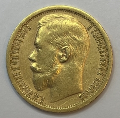 Золотая монета 5 рублей Николай II. Николаевская пятерка