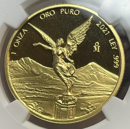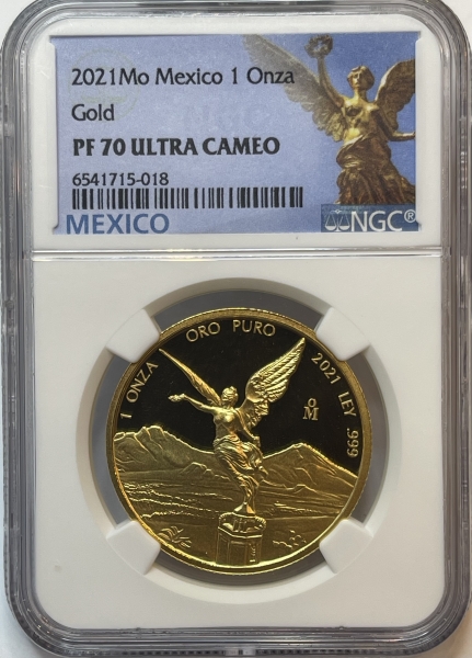 Золотая инвестиционная монета Мексики "Либертад" (Свобода) 31,1 грамм 2019 год, В СЛАБЕ NGC PROOF 70 ULTRA CAMEO