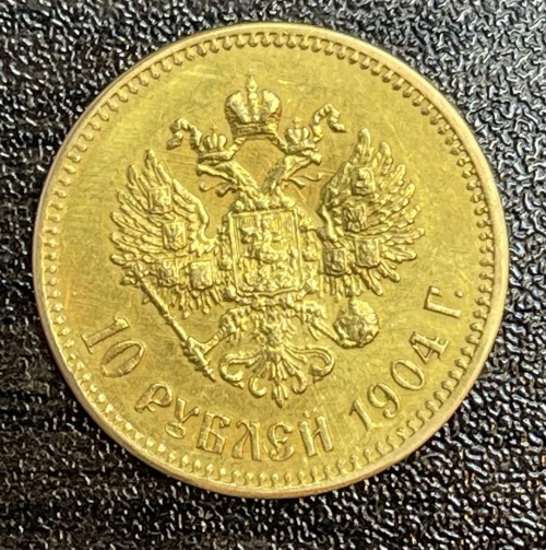 Золотая монета 10 рублей Николай II 1904г.,АР