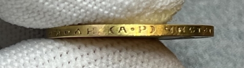 В центре профильный портрет влево императора Николая II. Слева от портрета надпись «Б.М. НИКОЛАЙ II ИМПЕРАТОРЪ», справа - «И САМОДЕРЖЕЦЪ ВСЕРОСС.». По окружности канта имеются рельефные элементы, выполненные в виде зубцов.