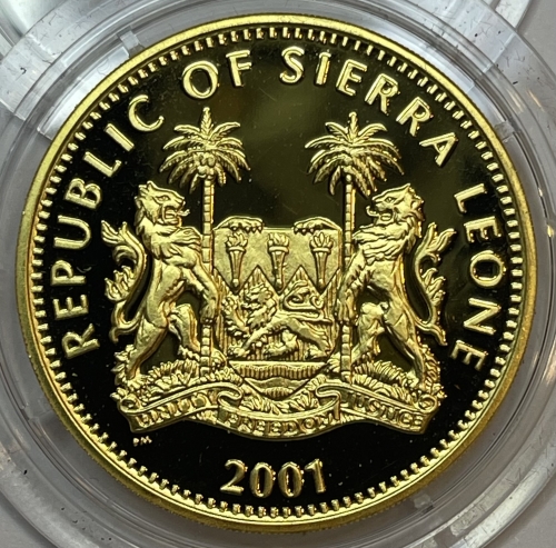 Золотая монета 250 долларов Гепард серия: Крупные кошки мира.,31,1г., 2001г.,Au 999,9 , Сьерра Леоне